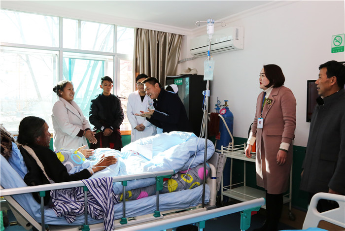 概要:2018年2月15日、16日,受公司黨委書記王斌同志委托,公司黨委副書記、副總經理陳彬同志、西藏阜康醫院院長阿旺建才、西藏阜康醫院院長歐珠羅布一行向依然堅守在一線的專家、醫務工作者、行政后勤人員和不能回家過節的患者表示了親切慰問,為他們送去了節日的祝福和新年禮物 。